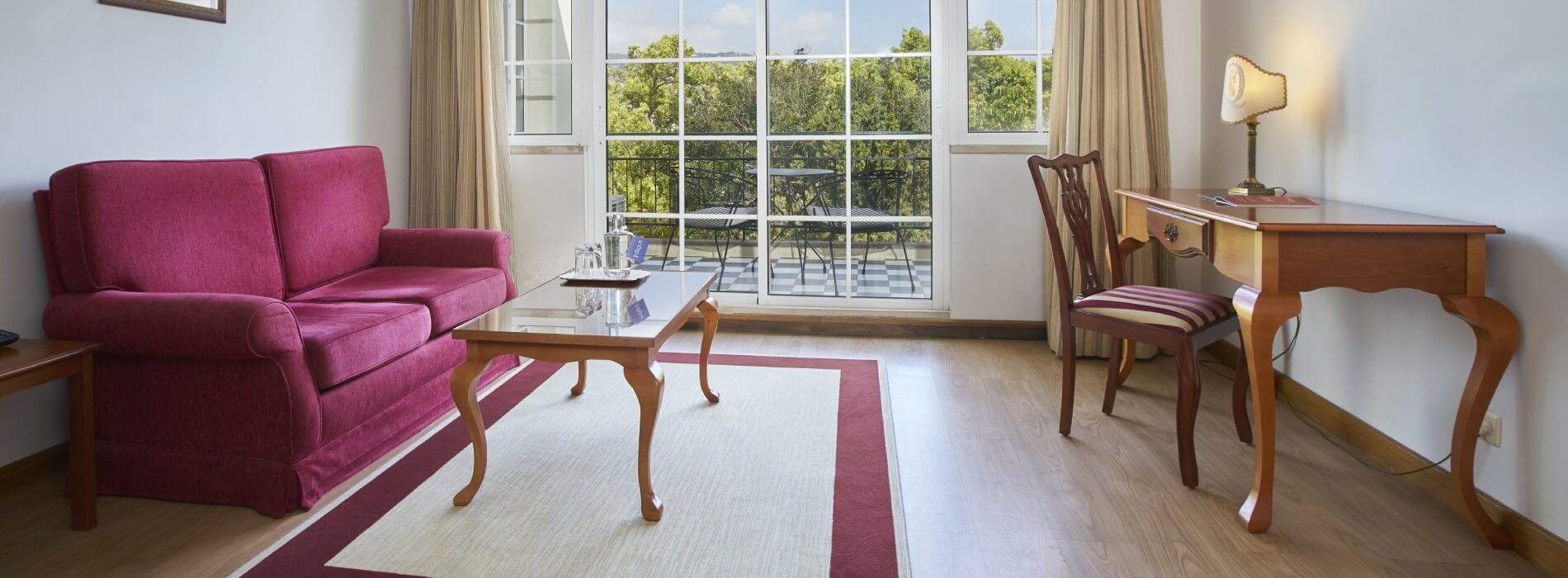 Each with completely separate living room and bedroom, all with entrance hall and en suite bathroom. Private Balcony. The suites are equipped with: air-conditioning; bathrobes; cable television; sofa-bed; minibar; writing desk; direct dial telephone; safe; dressing table; hairdryer; DVD; free Wifi; kettle and coffee & tea facilities.